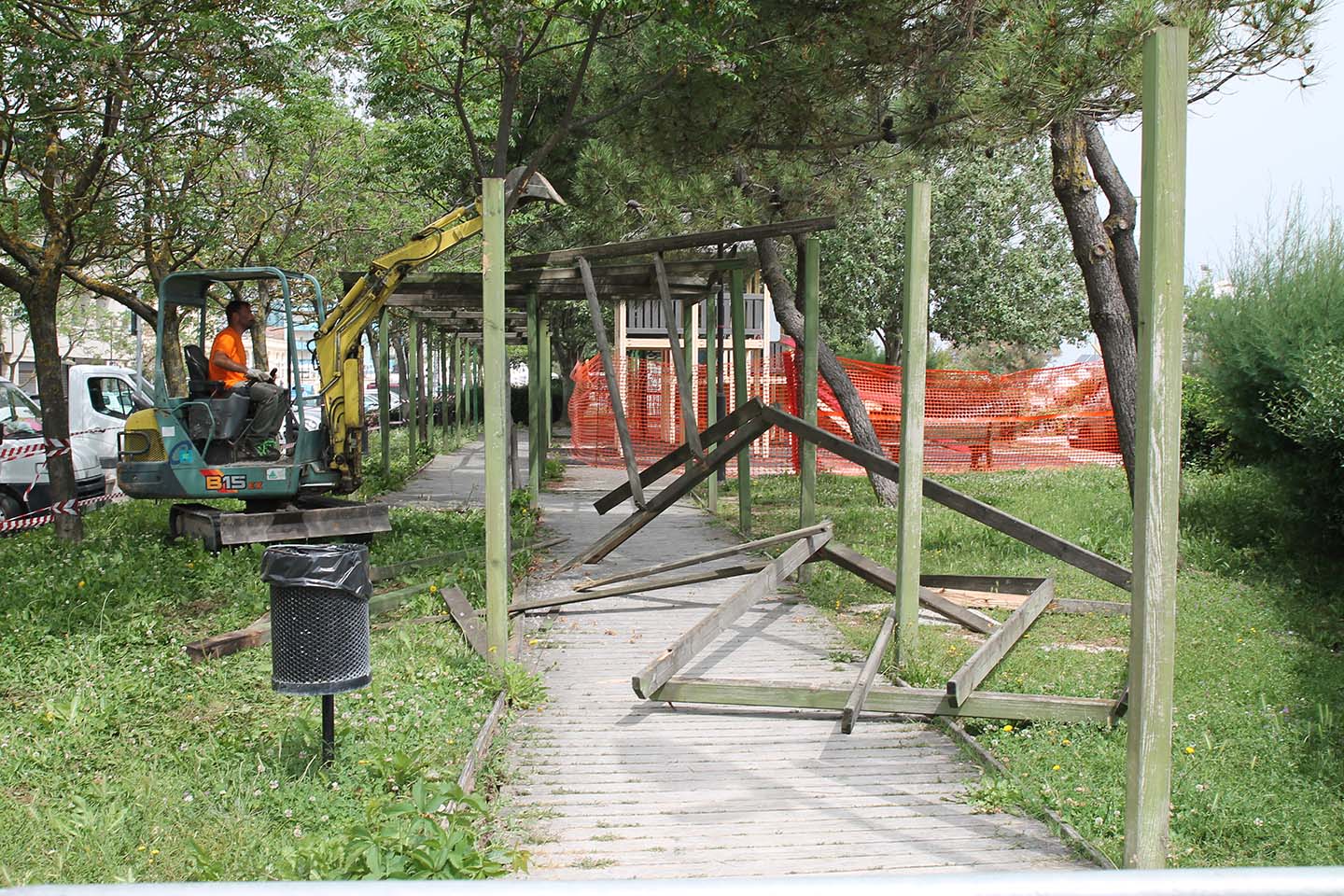 L’intervento intende, infatti, riqualificare il tratto di Giardini al mare che va da via Montello, zona Diamanti, fino a piazza A. Costa, eliminando gli elementi di degrado, come alberi deperienti, pavimentazioni in legno usurate e arredi in materiale legnoso che presentano evidenti segni di deterioramento.