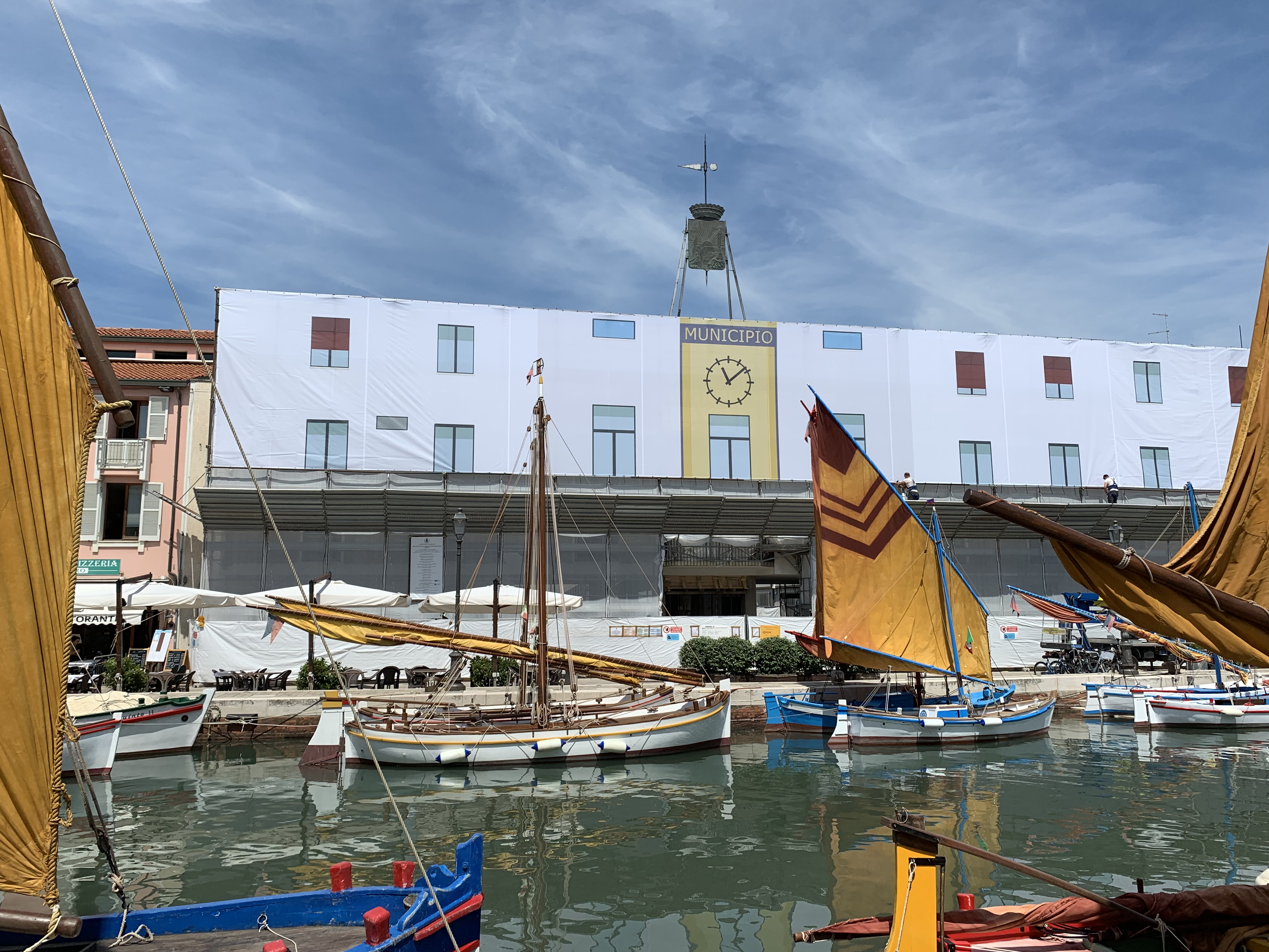 Nella mattinata di oggi, mercoledì 17 luglio, sono iniziati i lavori di copertura della facciata del Municipio fronte portocanale.