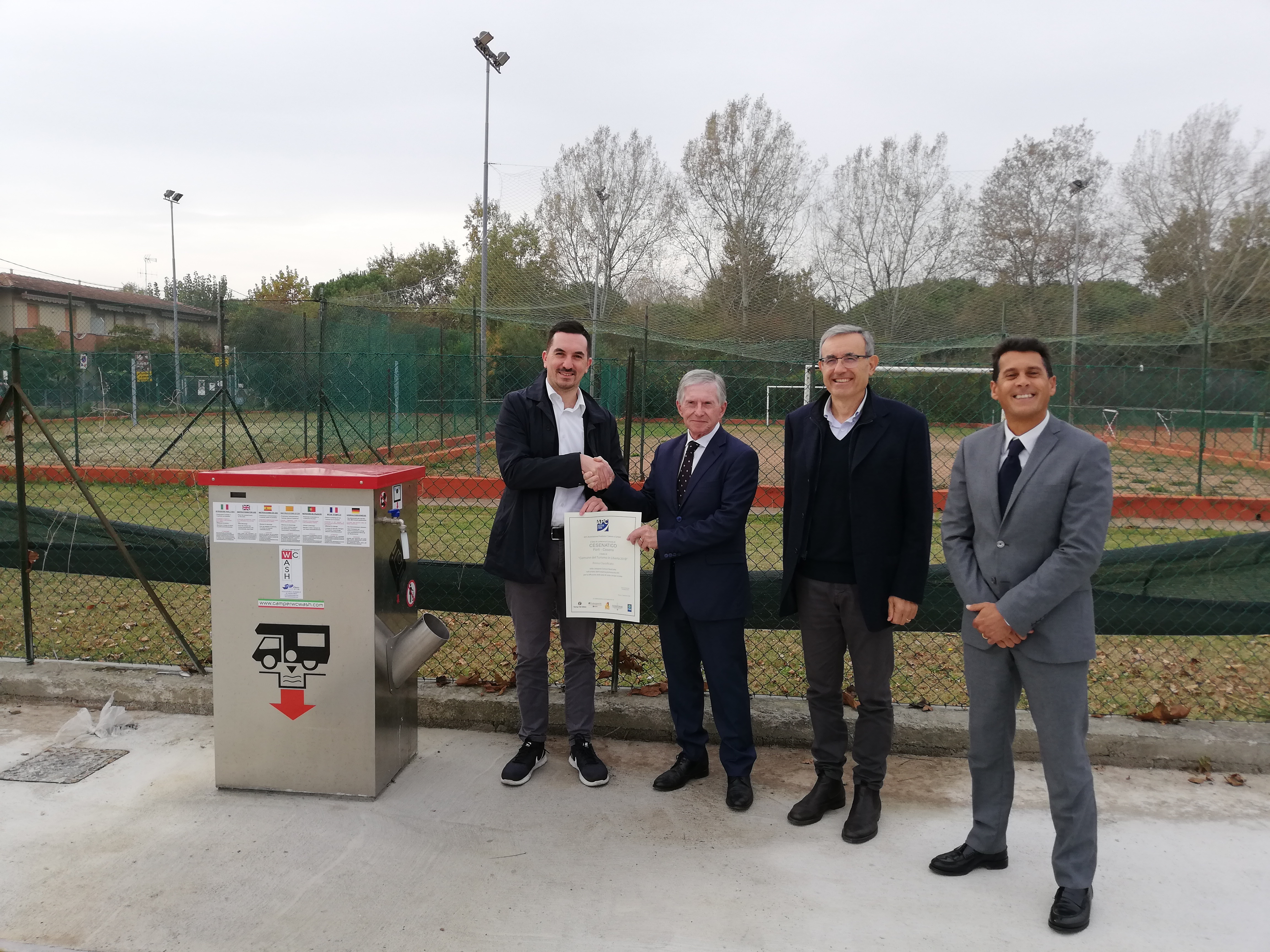 Dopo la conclusione dei lavori di riqualificazione dell’area sita in via dei Mille denominata “PELIGRO”, designata ad area attrezzata per la sosta camper, questa mattina il Sindaco Matteo Gozzoli, insieme al Vicesindaco Mauro Gasperini, al Cordinatore generale della società ATR Stefano Vernarelli (società che tramite convenzione con il Comune, ha progettato e realizzato gli interventi) ha accolto Gianni Brogini Direttore Marketing di APC-Associazione Produttori Caravan e Camper.