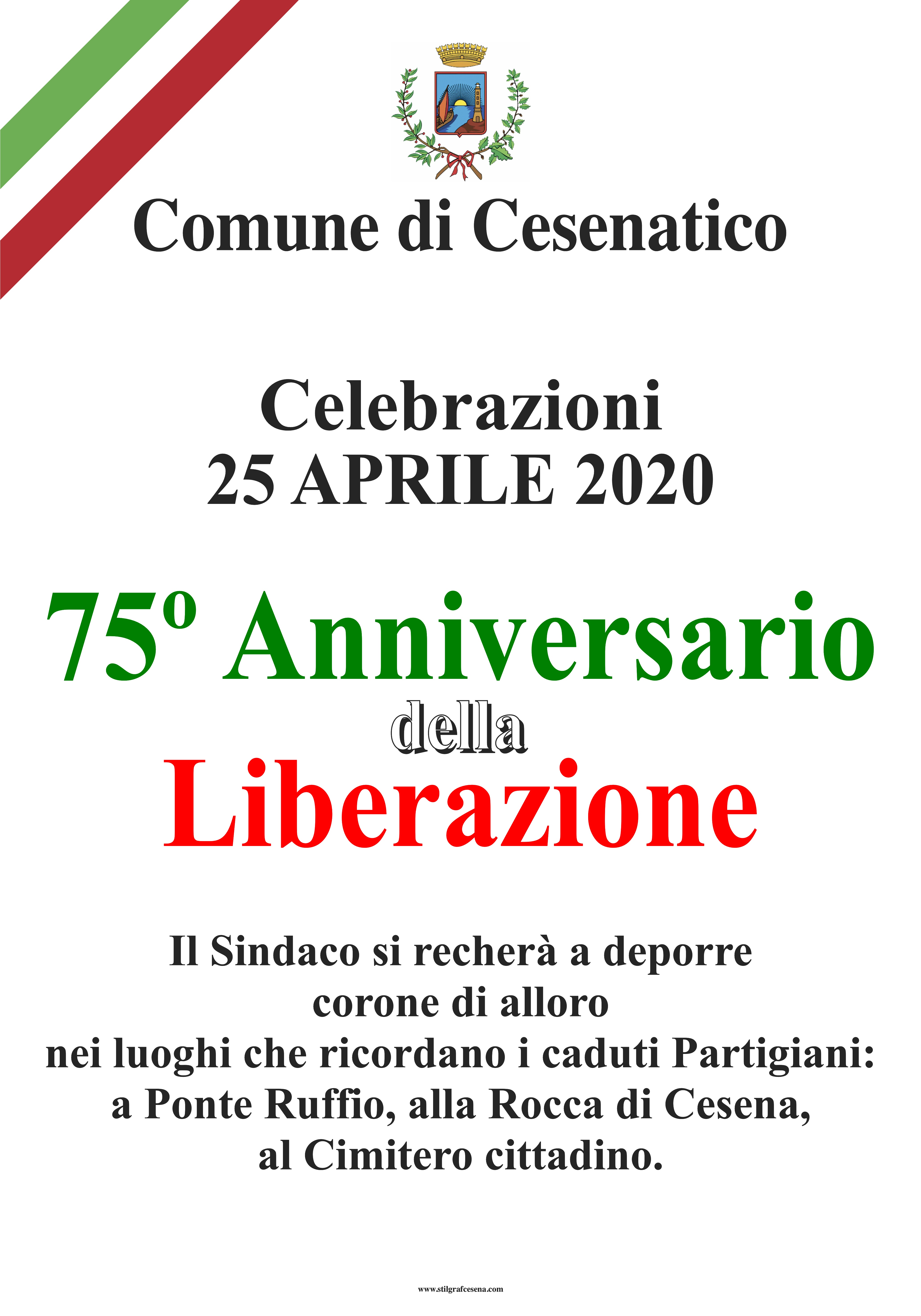 Per questo motivo sarà solo il Sindaco a recarsi nei luoghi della memoria per rendere omaggio ai caduti per la libertà (Ponte Ruffio, Rocca di Cesena e cimitero cittadino).