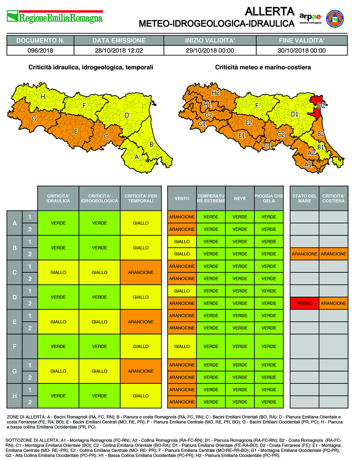 ALLERTA METEO ARANCIONE PER LA COSTA, STATO DEL MARE e CRITICITÀ COSTIERA dalle 00:00 del 29 ottobre alle 00:00 del 30 ottobre