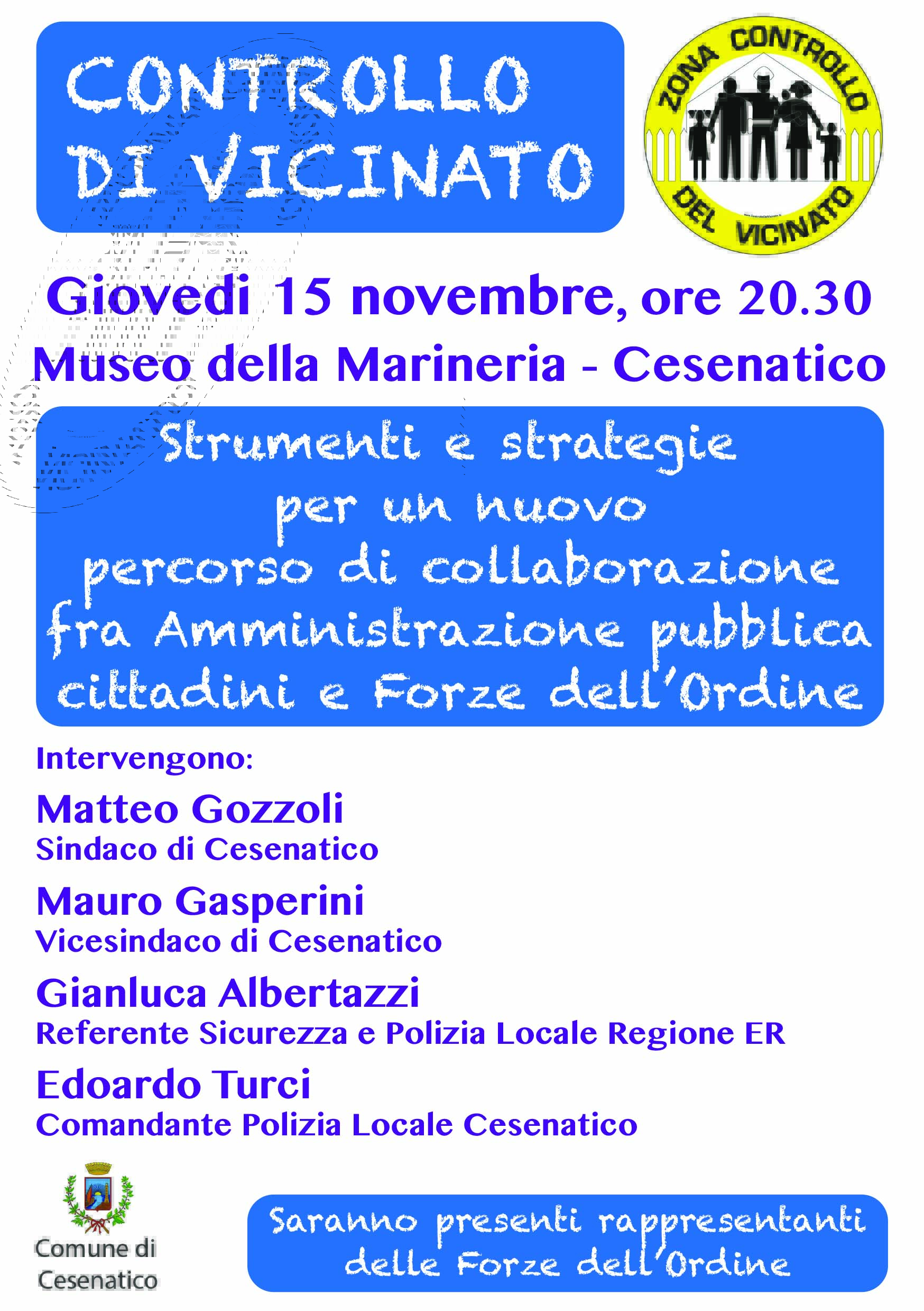 Il Comune di Cesenatico, in collaborazione con la regione Emilia-Romagna, è in procinto di avviare sul territorio il progetto denominato Controllo del Vicinato.