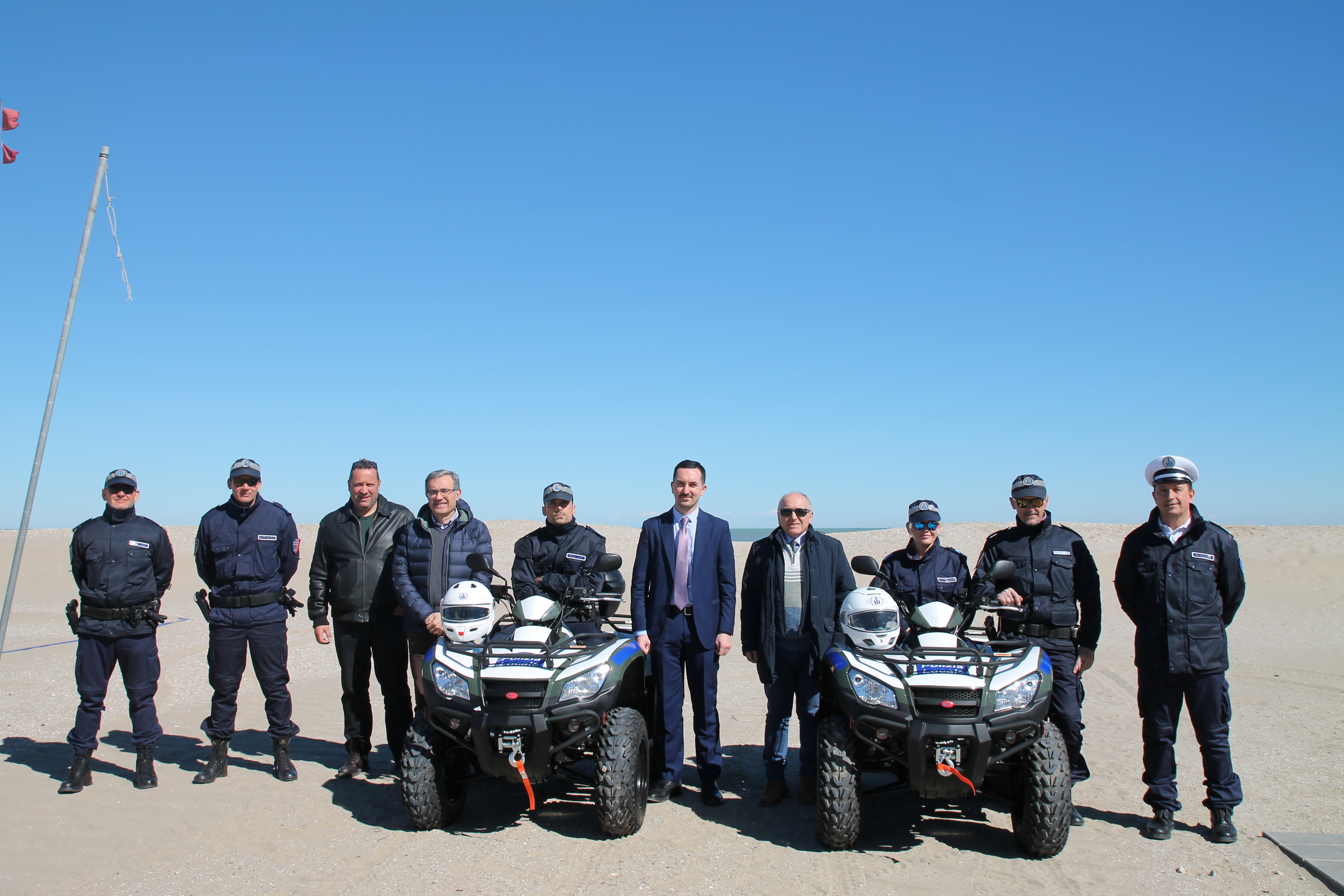 È avvenuta questa mattina la consegna ufficiale, alla presenza del sindaco Matteo Gozzoli, del Vicesindaco Mauro Gasperini e del Presidente della Cooperativa Bagnini di Cesenatico Simone Battistoni di due quad, (quadriciclo a motore, 450 cc di cilindrata, con gancio traino posteriore e verricello elettrico anteriore) al nucleo antidegrado/antiabusivismo della Polizia locale di Cesenatico, che svolge servizi di controllo contro l'abusivismo commerciale e della contraffazione, lungo gli oltre 7 chilometri di arenile durante la stagione estiva da Villamarina fino a Zadina a confine con Tagliata di Cervia.