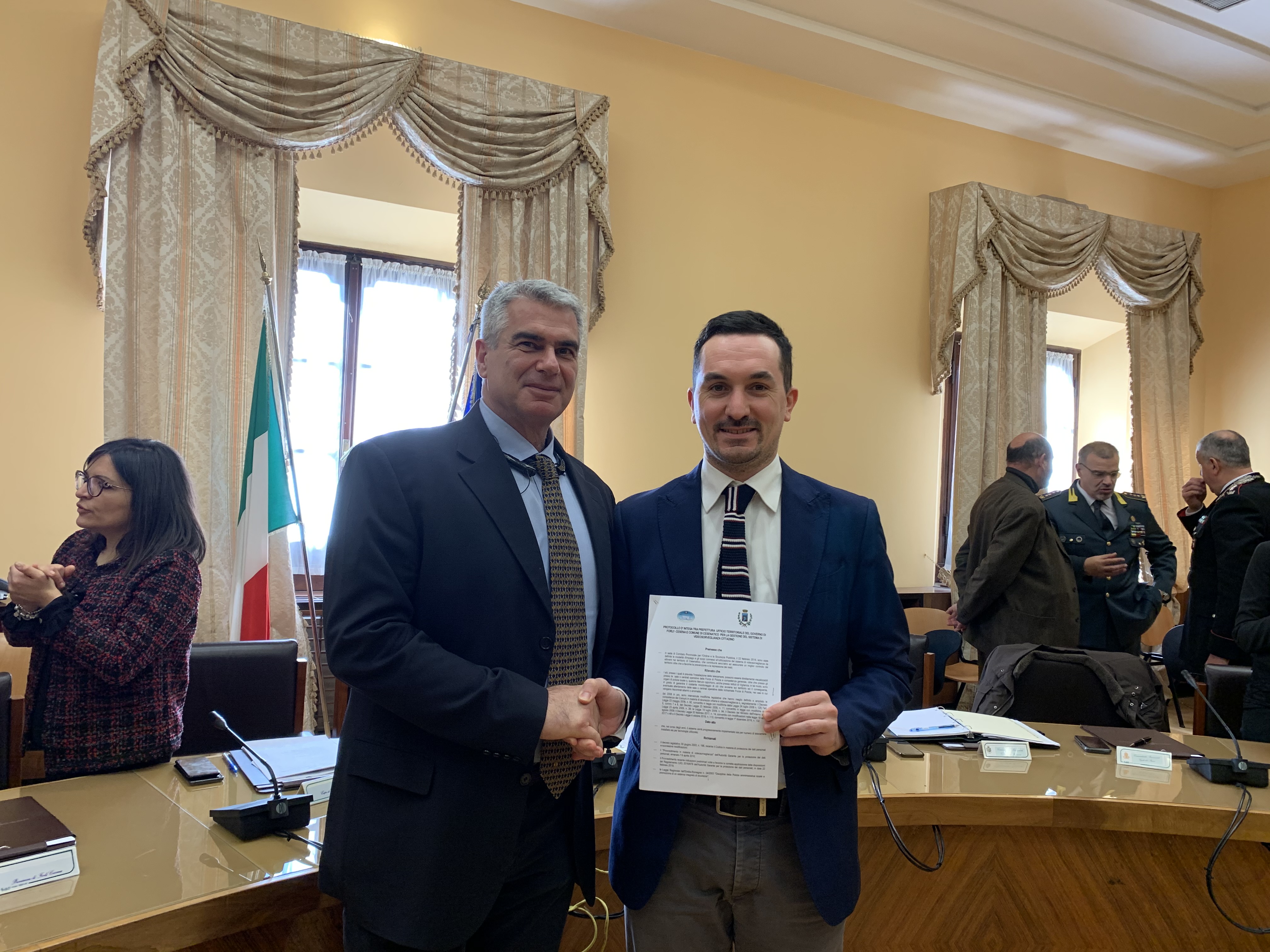 Nella mattinata di mercoledì 11 dicembre il Sindaco Matteo Gozzoli si è recato a Forlì per siglare un protocollo di intesa con il Prefetto Antonio Corona legato al progetto di videosorveglianza sul territorio.