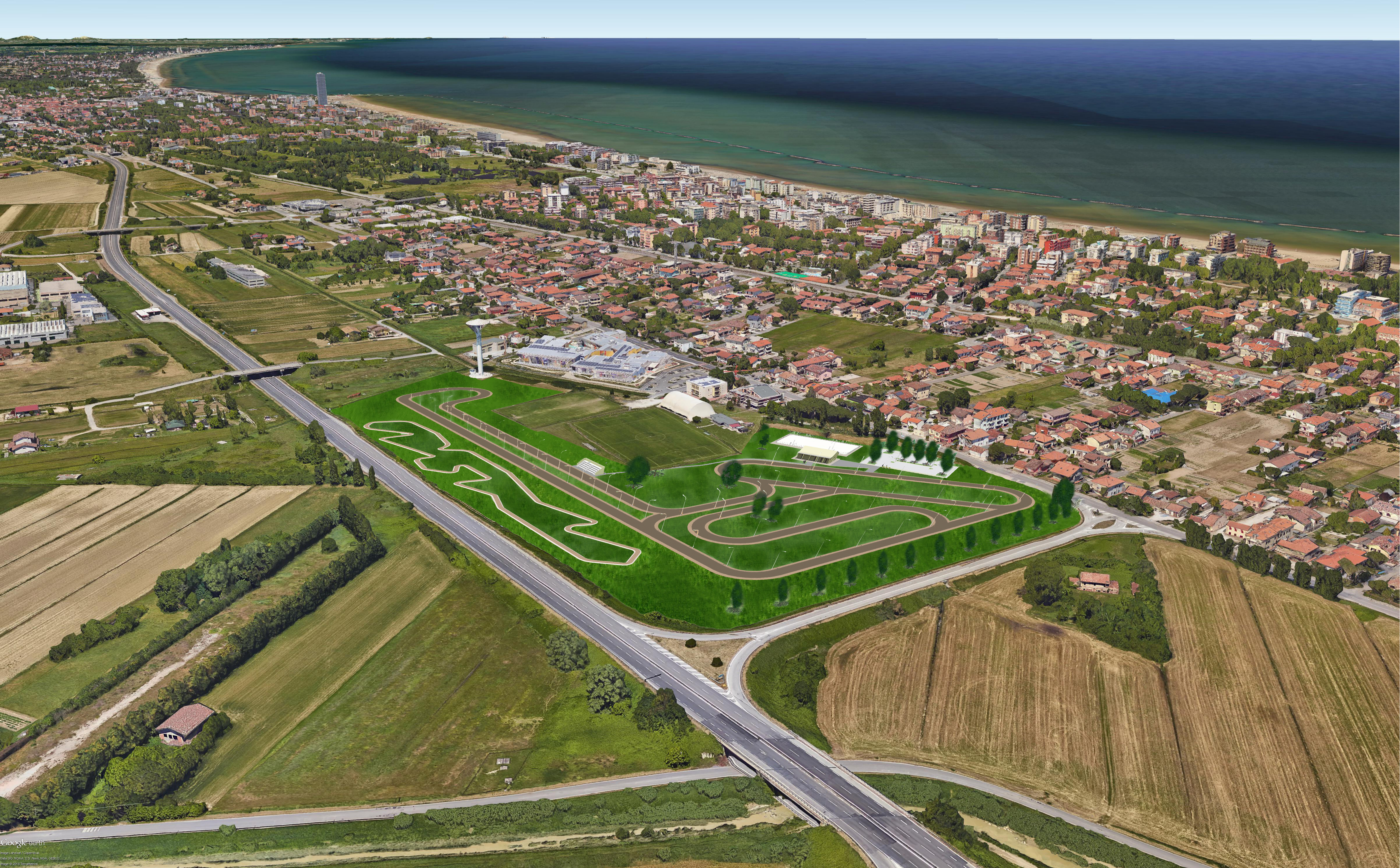 Per la realizzazione dell’opera è stata subito individuata un’ampia area di proprietà pubblica posta tra la S.S. 16 e via Litorale Marina, in prossimità del polo scolastico e del centro sportivo comunale esistente. L’area complessivamente misura 95.677 mq, di questi 20.951 mq erano già di proprietà comunale mentre i restanti 70.000 mq erano di proprietà di due enti pubblici: Ausl Romagna e Asp Cesena – Valle Savio. L’accordo firmato lo scorso luglio prevede la cessione a favore del Comune di Cesenatico delle aree situate a Villamarina (oltre 70.000 mq) e di un’area di 13.450 mq situata nella frazione di Bagnarola a fronte di una serie di operazioni a favore di Ausl Romagna e Asp Cesena-Valle Savio che comprendono la valorizzazione urbanistica di terreni, cessione di terreni e la permuta di un terreno edificabile già inserito dal Comune nel piano delle alienazioni immobiliari. L’ accordo è finalizzato all’acquisizione, da parte del Comune di Cesenatico, dei terreni di proprietà di Ausl Romagna e di Asp Cesena Valle Savio in località Villamarina che saranno destinati appunto alla realizzazione del ciclodromo e dei terreni di proprietà di Ausl Romagna in località Bagnarola da destinarsi al potenziamento del parco urbano esistente.