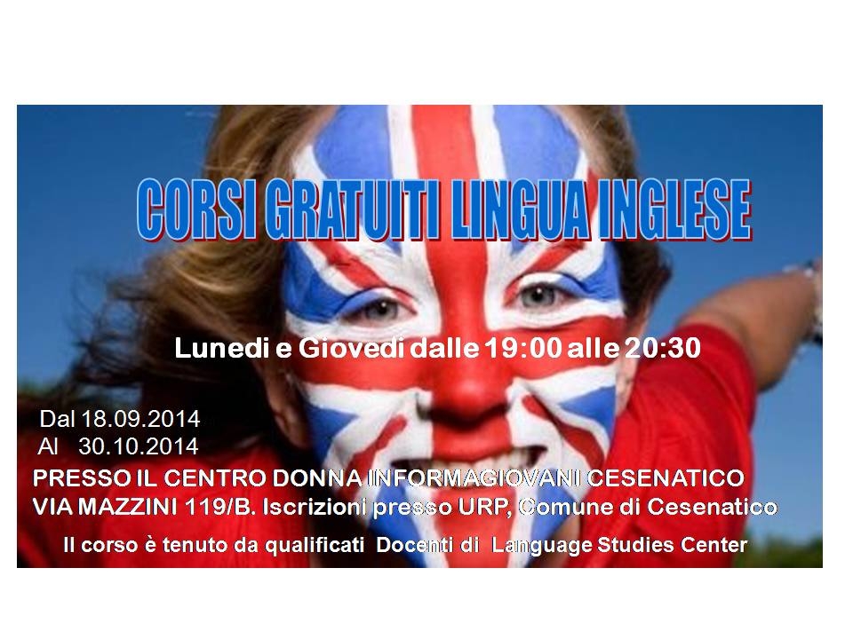 Corsi gratuiti di lingua inglese dal 18 settembre al 30 ottobre 2014